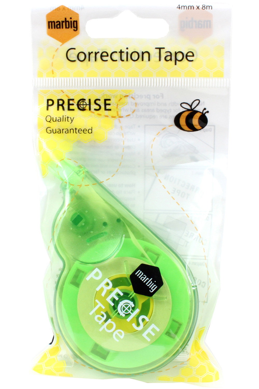 Correct any printed, written, or inked mistake with ease with Marbig Correction Tape. Simply apply the nib to your error, press down and pull the tape across your paper. Tape dies immediately for quick fixes. Assorted colours available: green, blue, or purple.