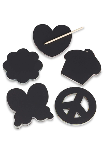 Simple to use, amazing results, and surprises revealed with every scratch, Scratch Art Nature Notes are a unique way to create messages, designs, gift tags, and more! Scratch away at the black coating to reveal five different colourful patterns. Each box contains 125 notes (approximately 3.5 inches by 3.5 inches) in five friendship/favourite things-themed shapes (flower, heart, peace sign, cupcake, and butterfly). Kids four and older can use the wooden stylus to add designs, doodles, patterns, words, pictures and more to create truly one-of-a-kind works of art! Notes and stylus store in a handy desktop dispenser box.