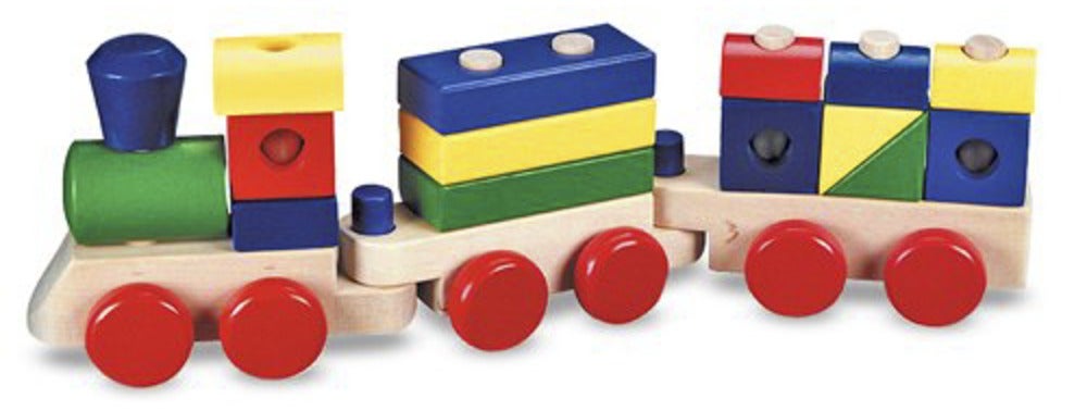 Only available in store, not available online. A fun and colourful Melissa & Doug Stacking Train. Load up the train with bright, colourful shapes and get learning off to a rolling start! Solid wooden toys that can be enjoyed for years to come. The 18 easy-to-grasp wooden blocks slot onto rods on the flatcars, providing a great opportunity to practice fine motor skills. For even more play value, the blocks can also be used for stacking, building, and sorting, and the smooth-rolling train cars detach to shorten the train or let children play with the cars individually.