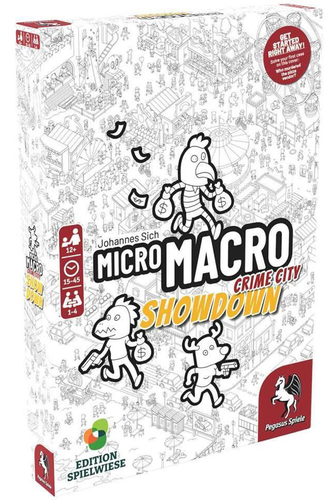 Insidious individuals with murderous intentions and greedy thieves stalk the streets of Crime City, waiting in dark alleys and ambushing the poor citizens. In Crime City there are numerous new crimes just waiting to be solved by you! Team up with your friends to solve tricky criminal cases, identify motives, find evidence, and convict the perpetrators. Showdown is the fourth and final part of the MicroMacro: Crime City series, and includes a new city map with 16 brand-new crime cases. This is a stand-alone game, so the 16 cases included here can be played without having played the original game.