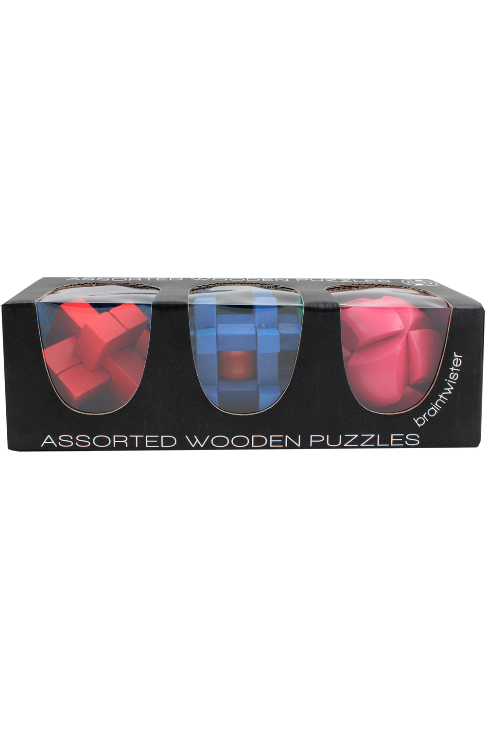 This pack of 3 colourful 3D wooden puzzles are great fun for anyone who loves to take a challenge. All you have to do is assemble the wooden pieces into the design it makes - from a pyramid, sphere or cube to chunky geometric shapes. But be careful - it's harder than it looks! Assorted designs and difficulties available.