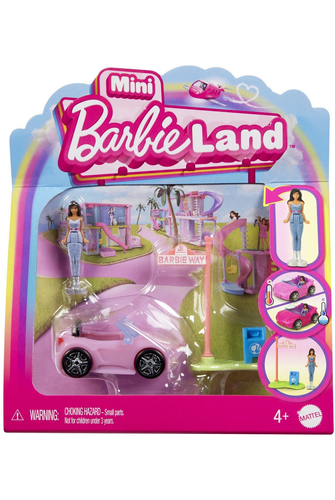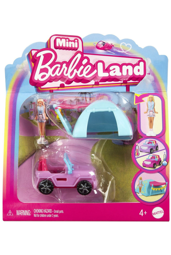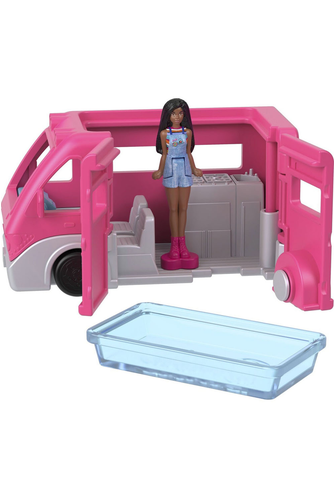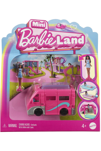Enter the world of Barbie doll with Mini BarbieLand - a place to imagine big and Dream in Mini! Stylish rides made with surprise, these mini vehicle sets are ready for play or display. The small-scale recreations of iconic Barbie transportation, like the DreamCamper, have fun features and a colour-change transformation unique to the vehicle! Each set comes with an adorably styled 1.5-inch Barbie doll that bends at the waist so she can sit and drive toward big adventures in Mini BarbieLand. Fans will want to collect all these cute wheels to build their own mini world! Each sold separately.