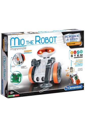A unique scientific kit which allows you to assemble a real robot! Have fun programming its movements and invent exciting challenges with your friends! Equipped with an innovative ultrasound sensor, it can detect distance from objects, enabling the robot to avoid obstacles in its way, while with its magnetic arm it can pick up metal objects! The kit includes a rich variety of interchangeable components allowing you to transform the robot the way you want it. The illustrated scientific manual provides a wealth of information about electronics so you can become a real robotics expert!