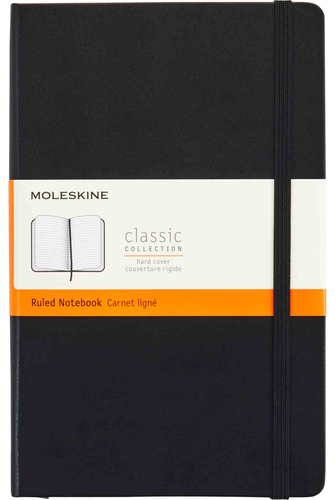 This Myrtle Green version of the Moleskine Classic Notebook invites you to tell your own story on its pages through the words, ideas, plans and lists that fill your mind and shape your day. Like all Classic Notebooks it has a matching bookmark ribbon to help you stay organised and efficient, as well as a colour-coordinated elastic closure and rounded corners to ensure your notes are protected and secure both in your bag and on the move. The front flyleaf features the Moleskine 'In case of loss' notice to record your name and a prize of your choice for anyone who returns your notebook if lost. Finally, the expandable back pocket is designed to hold the loose notes, tickets, flyers and mementos that complete your story.