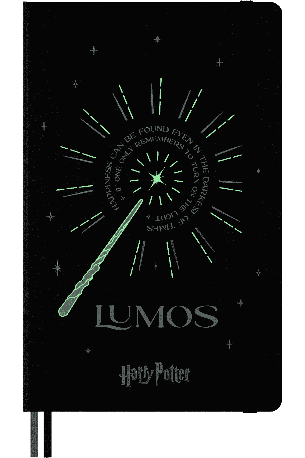 Lumos: the most straight-forward of charms but one that brings light to even the darkest of times. Shine a light on your creativity on the pages of this ruled notebook in the shape of handwritten ideas, thoughts, plans and notes. With a special glow-in-the-dark cover, this Harry Potter Limited Edition features two bookmark ribbons and includes a moving quote from the story within. Several of the ivory-coloured pages have lumos-themed flip-book illustrations, while the endpapers give you the chance to brush up on your wand gestures using your favourite pen.