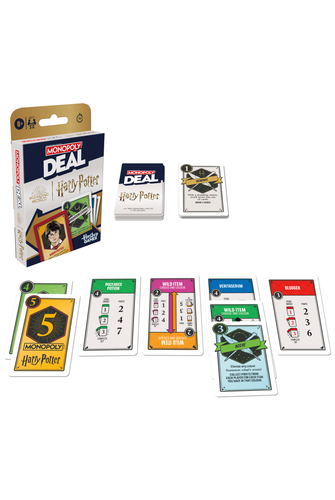Conjure, collect, and win! In the Monopoly Deal: HARRY POTTER kids card game, a wealth of enchanted objects is waiting to be found. Be the first witch or wizard to collect 3 different sets of magical items to win. Cast spells over opponents to disrupt their plans - and receive help from iconic heroes and villains while duelling for control over the riches of the WIZARDING WORLD! This fun family card game for kids and adults can be played in about 15 minutes, so it's an ideal game for fitting in family fun anytime. And HARRY POTTER toys and games are wonderful holiday and birthday gifts for teens, adults, and kids.