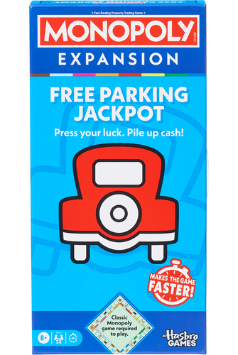 Press your luck and pile up the cash! The Monopoly Free Parking Jackpot Expansion brings a fresh twist to the Monopoly game and takes half the time to play. Just attach this expansion to the classic Monopoly board, and turn the Free Parking space into a Jackpot. (Classic Monopoly game required to play. Sold separately.) Spin the spinner for a chance to win BIG money! Upgrade to the Deal Mobile token and draw Bonus cards to take free properties and more. The game ends when all properties are owned or when one player has gone broke. The richest player wins! Break out this exciting Monopoly expansion pack for Family Game Night, vacations, and fast fun anytime. Family games and kids board games make cool kids gifts too. Includes Gameboard Attachment with Spinner, 6 Spin Space Clips, Deal Mobile Token, 20 Spin Chips, 32 Free Parking Bonus Cards, 8 Reminder Cards, and Expansion Guide.