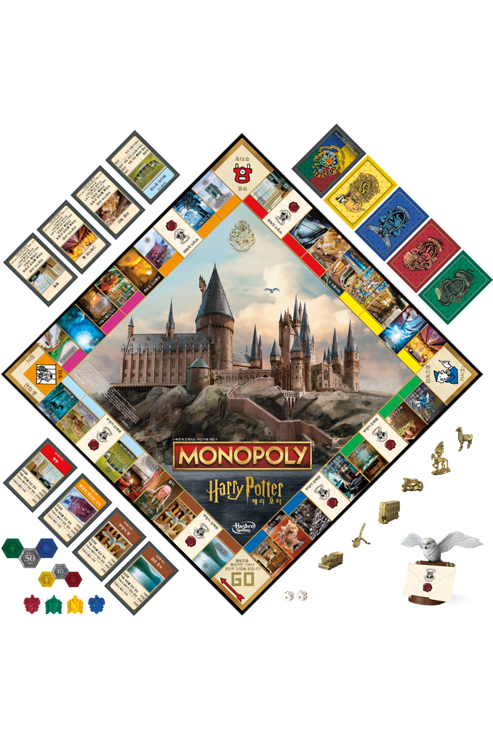 Ready for a magical year at Hogwarts? In the Monopoly Harry Potter Edition game, play as a Hogwarts student. To start, each player chooses a themed golden token. Then they'll choose a House Card to be sorted into a house. In this edition, Hogwarts locations are properties and house points replace Monopoly money. Move around the board and use house points to explore iconic locations in Hogwarts castle and Hogsmeade Village. The more a player explores, the more house points they can collect from other players. Collect a colour set to add house crests, and draw Owl Post cards for game-changing news. The game ends when all locations have been explored, and the player with the most house points wins! This strategy board game is a fun game for family time, and it's a great gift for kids, teens, and adults who are fans of Harry Potter.