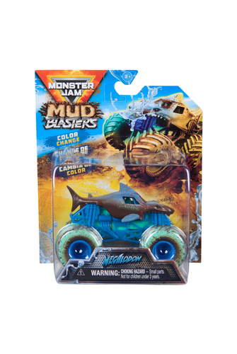 Unleash the monster-sized fun with the all-new Mud Blasters Color Change Trucks from Monster Jam! Witness these mighty 1:64 scale die-cast trucks as they roar to life with just warm water, transforming from a muddy marvel to a clean, crisp look. It#s non-stop, mess-free excitement that kids can repeat over and over! Use cold water to turn it dirty again! Ramp up your collection with all six uniquely styled trucks, featuring exclusive new Mud Blasters decos of the legendary Grave Digger, thunderous ThunderROARus, fierce Megalodon, and electrifying Blue Thunder. Each truck is decked out with authentic Monster Jam details like official BKT Tires, shiny chrome rims, and a chassis so true to life, you'll practically hear the crowd roar! Take the thrill to the next level by dunking these beasts in the Monster Mutt Dalmatian Dunk Tank Playset, or mix and match with other Monster Jam toy figures and playsets for the ultimate Monster Jam showdown. Ideal for both boys and girls aged 3 and up, these trucks are the perfect gift to ignite passion and adventure in any young Monster Jam fan. Rev up your engines and get ready to experience the dirt-flying, car-crushing action of Monster Jam at home!