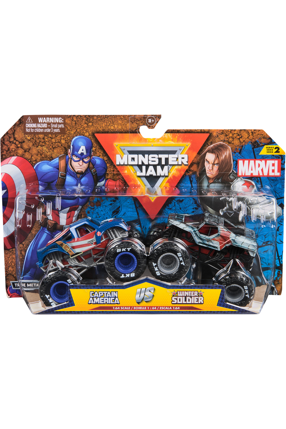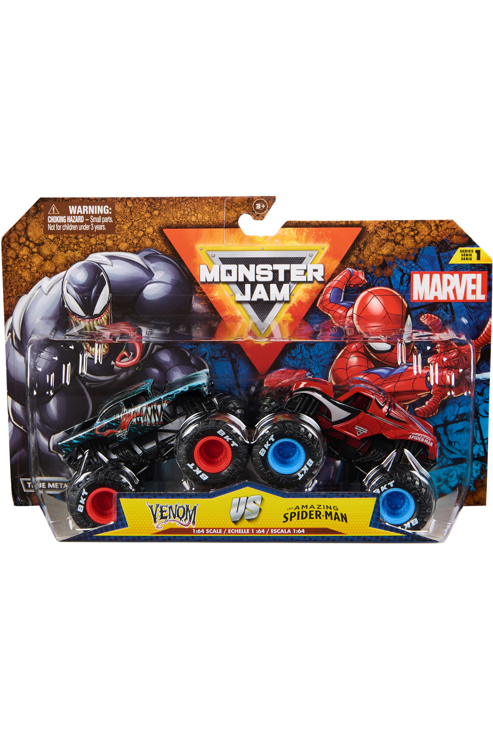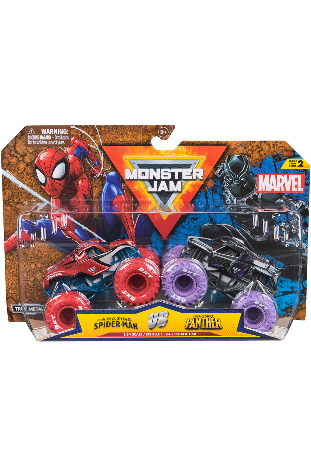 - Contents: 2 Monster Jam Marvel 1:64 Monster Truck Vehicles