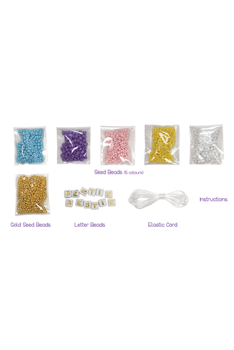 - Contents: 5 colours of beads, Gold beads, Gold alphabet beads, White cord
