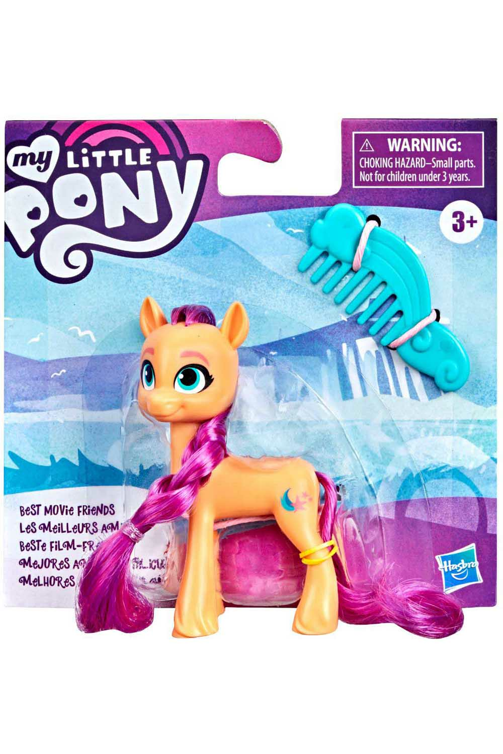 Get to know a group of Pegasus, Unicorn, and Earth Pony friends! Meet Sunny Starscout, Princess Petals, and Izzy Moonbow. These 3 ponies, alongside the rest of their friends, must learn to work together in order to reunite the pony kinds and bring magic back to their world. Imagine members of the Mane 5 are on a magic-saving mission with Movie Friends figures inspired by My Little Pony: A New Generation. 3-inch pony figures feature character-inspired colours, hair styles, and Cutie Marks. Each figure comes with a comb accessory for brushing their long, soft hair. Fans new and old can imagine adventures with My Little Pony: A New Generation movie toys.