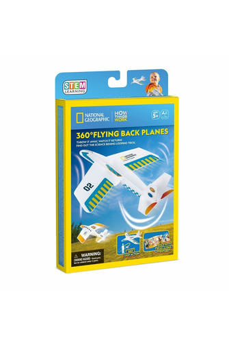 Easy to assemble this build-your-own Flying Back Plane kit from National Geographic's How Things Work collection. Part of the STEAM education series, this engaging project allows children aged 5 and up to construct their own functioning flying back planes.
