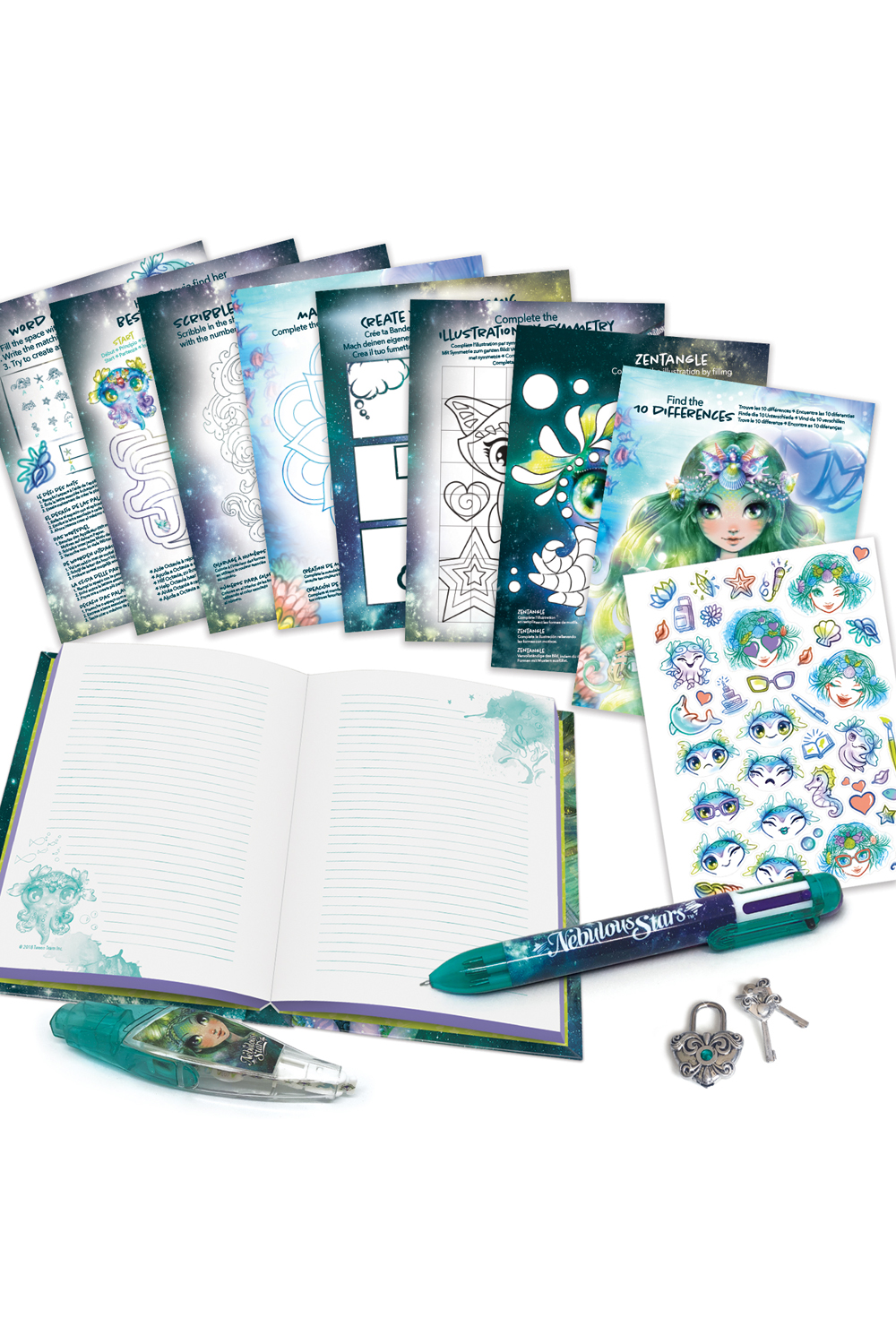 Everyone has their little secrets! This Nebulous Marinia Secret Diary is the perfect place to keep all of your secrets safe, and for you to share thoughts and activities. This diary also comes with a magic 6-colour ballpoint pen pen, 44 pages of fun activities, and a sticker page.