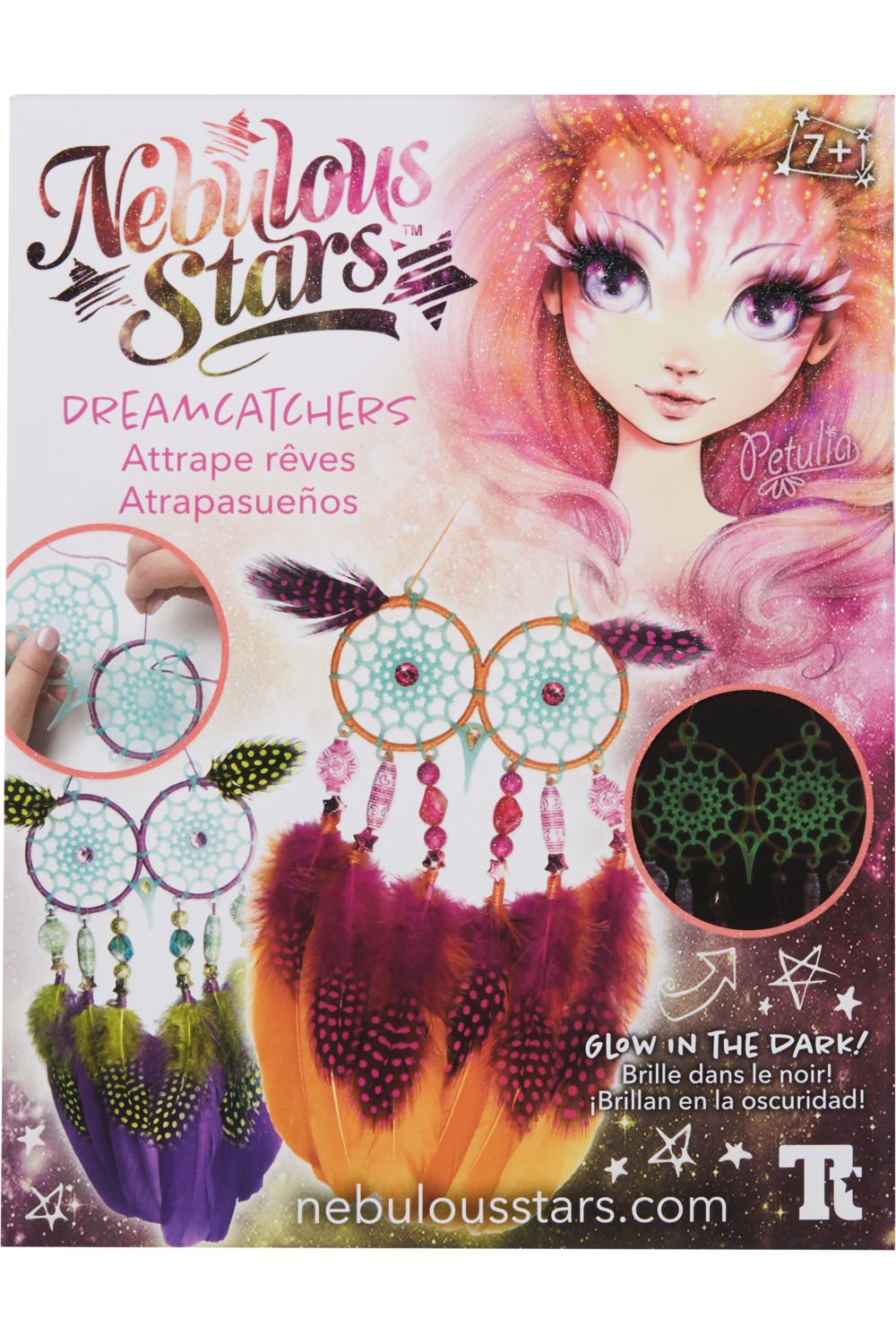 Make 2 owl-shaped dreamcatchers with glow in the dark eyes that will catch any nightmares while you're asleep! The Nebulous Stars universe offers children a unique environment that combines aesthetics, well-being, and positive values. Contents: 2 dreamcatcher bases, cotton thread, 28 feathers, 28 beads, 6 rhinestone stickers, jewellery glue, and instructions.
