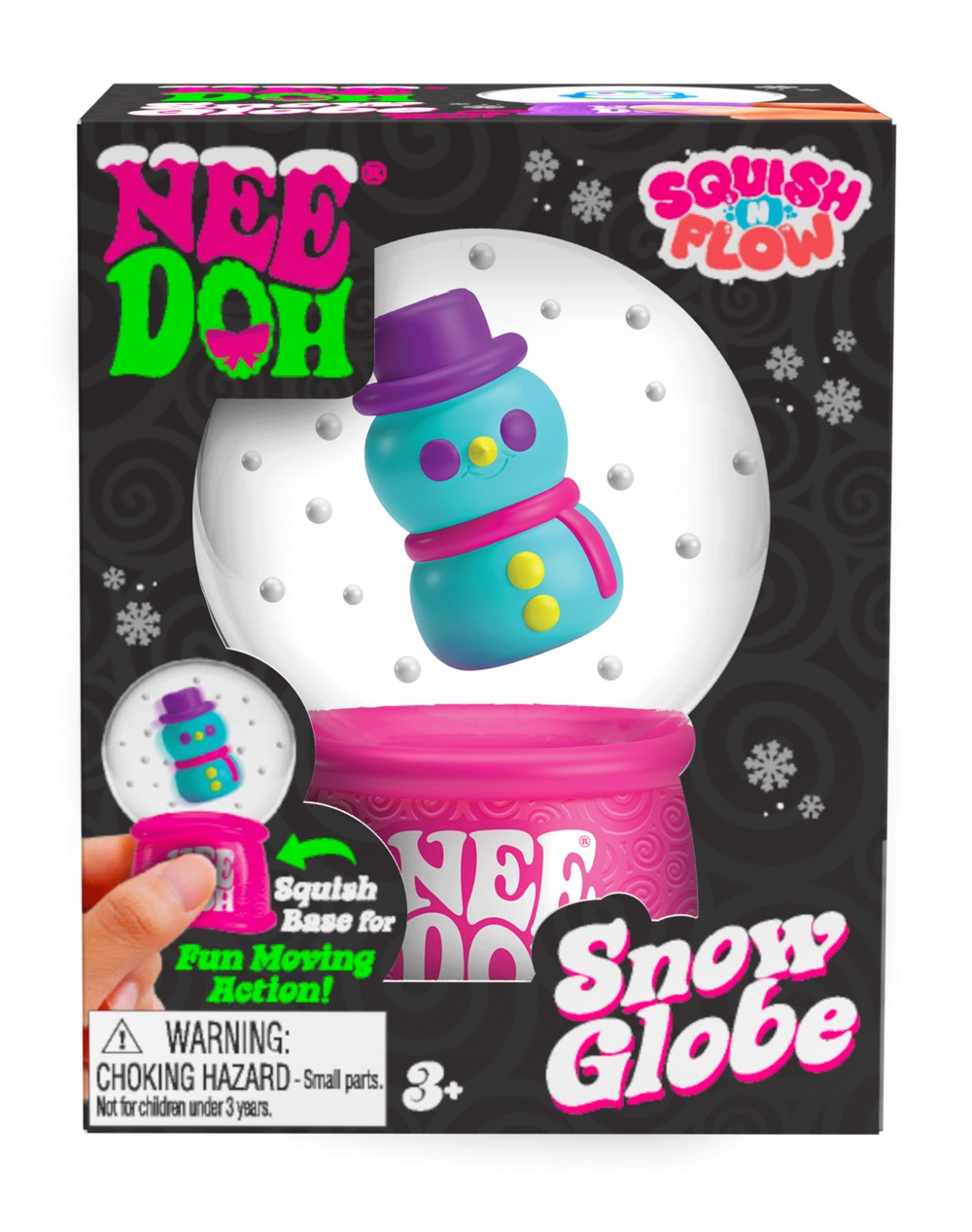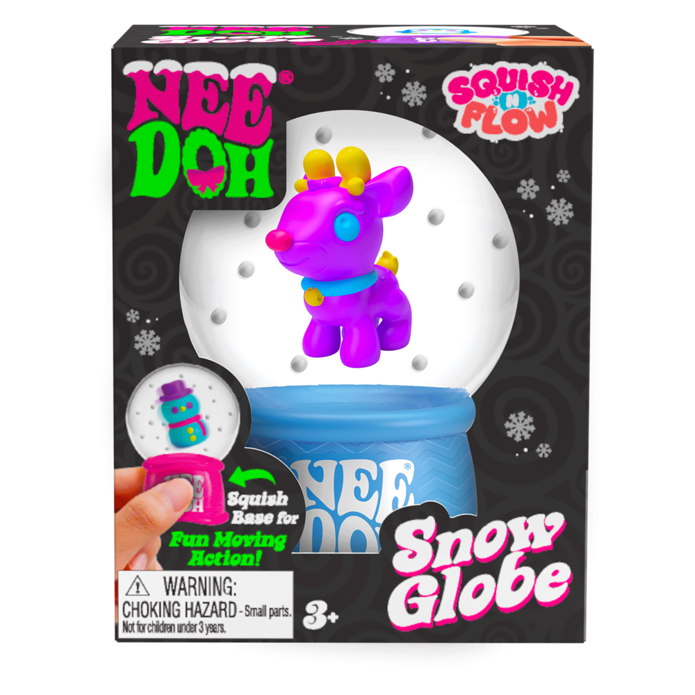 The Squish n Flow Snow Glob NeeDoh brings a magical winter scene to your fingertips with a fun, squishy twist. This sensory toy combines the relaxing feel of a stress ball with the mesmerising movement of a snow globe. Simply squeeze the base and watch as the snowflakes and adorable holiday characters inside swirl and dance, creating a soothing and satisfying visual experience.