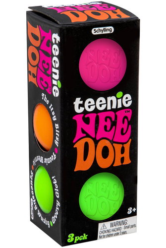 Teenie NeeDoh is the itsy, bitsy, teenie-weenie, squishy-wushy, Groovy Glob. Give your fingertips some groovy stress relief with these teenie globs. NeeDoh is the Groovy Glob. Feeling stressed out? You knead NeeDoh. Give it a squeeze, a squish, a pull or a smush. It'll soothe your soul and get you feeling groovy fast. Teenie NeeDoh is the itsy, bitsy, teenie-weenie, squishy-wushy, Groovy Glob. Give your fingertips some groovy stress relief with these teenie globs.