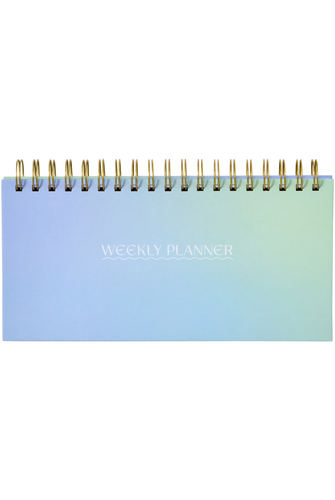 Keep your week organised and at a glance with this weekly planner from the Noted Aura range featuring a blue-to-green ombre hardcover. This undated planner features a week-to-view format with sections for notes, to-do lists, and doodles.
