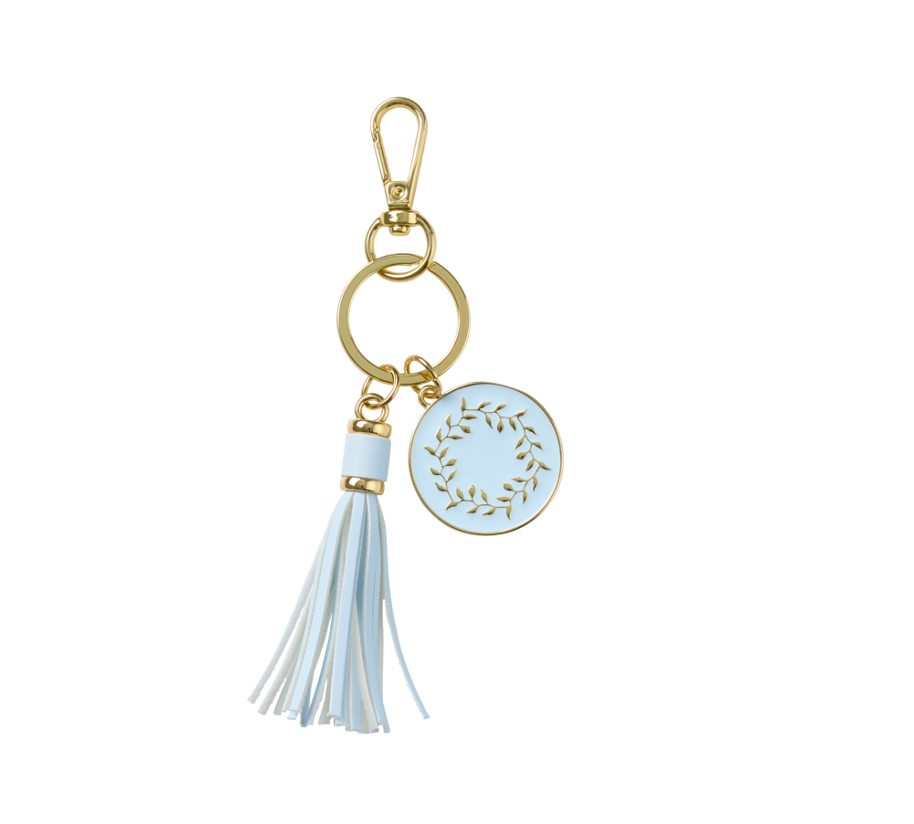 Add a little bit of flair to your pencil cases, bags or keys with this elegant keyring from the Noted Belle range. Featuring a pastel blue tassel and wreath charm.