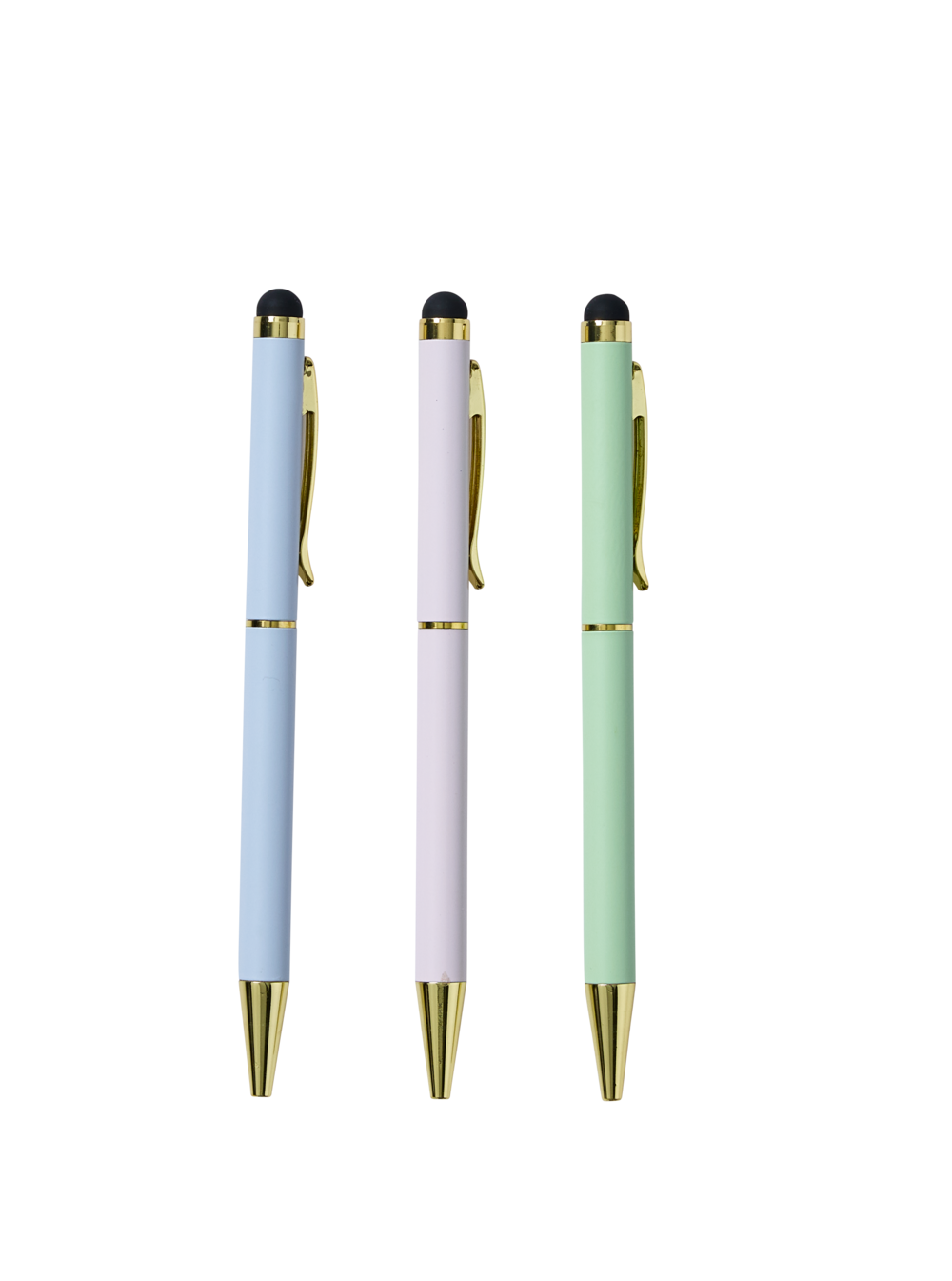 Fashionable and functional, this pack of 3 stylus pens from the Noted Belle range is a perfect addition to your stationery set. These beautiful pens come with black ink, an array of blue, pink, and green barrels, a twist mechanism, and a touch screen stylus end.