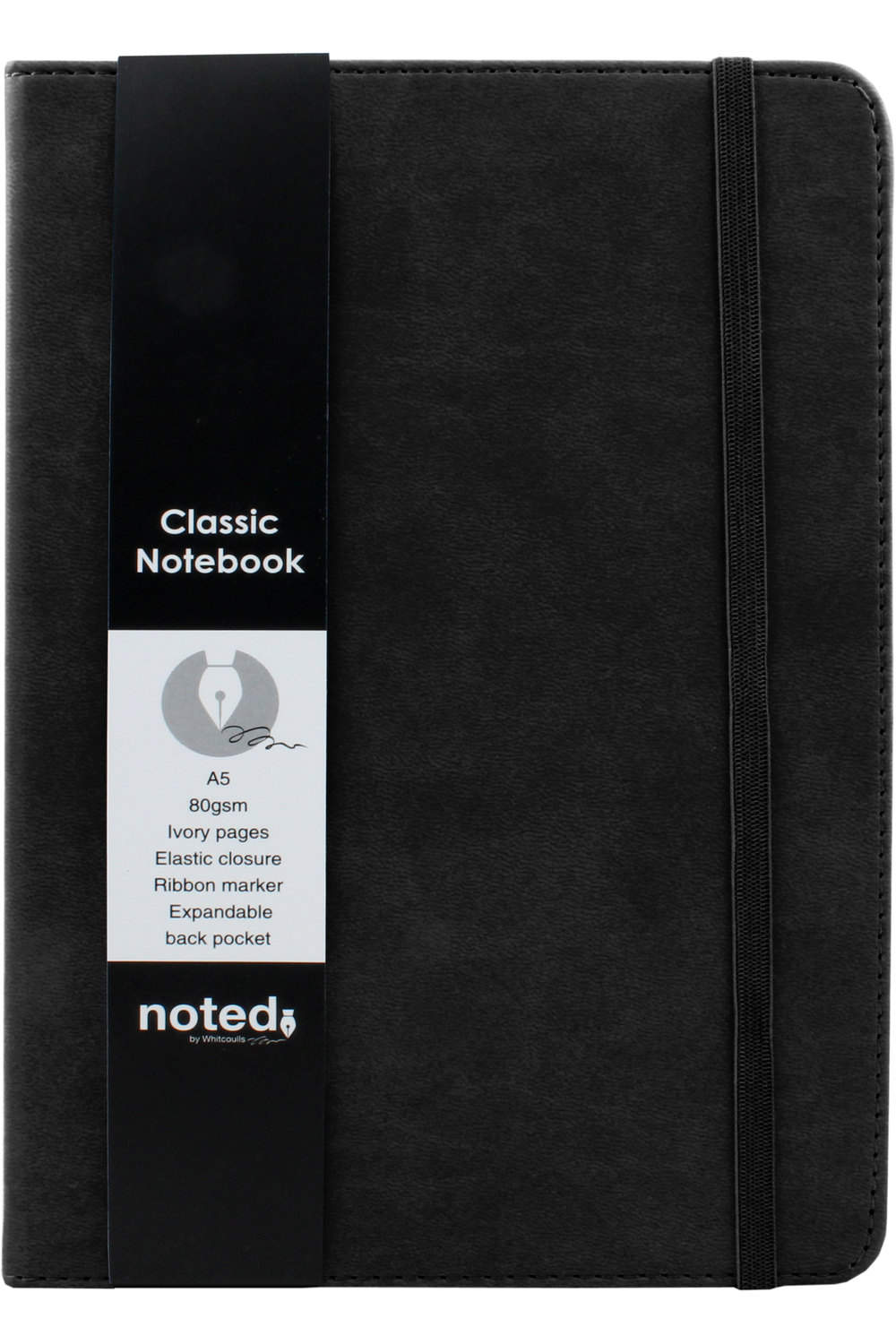 Noted Classic notebooks combine great value with traditional styling. The Noted Classic A5 notebook has a soft and durable leather like cover and lined ivory pages.