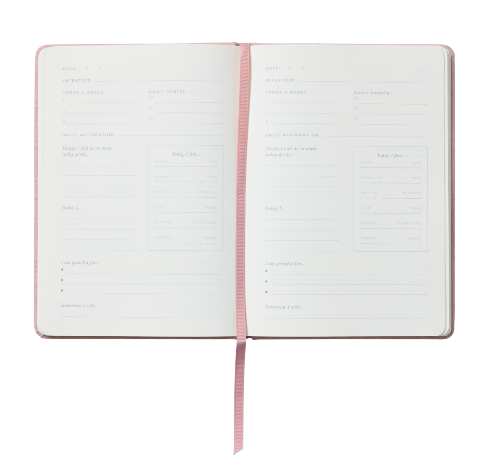 This Noted Rosa Gratitude Journal is a great tool for keeping calm, staying focused, and being positive all year long. Each page features a guided reflection on the day, and includes sections where you can express your daily intention and affirmation, list goals and habits, track your mood on a sliding scale, reflect on the day and note down the 3 things you are most grateful for. Each journal includes a ribbon page-marker to keep your place. By challenging negative thought patterns, focusing on your strengths, setting goals, creating meaningful connections, and maintaining healthy habits, you can live the most fulfilling life possible.