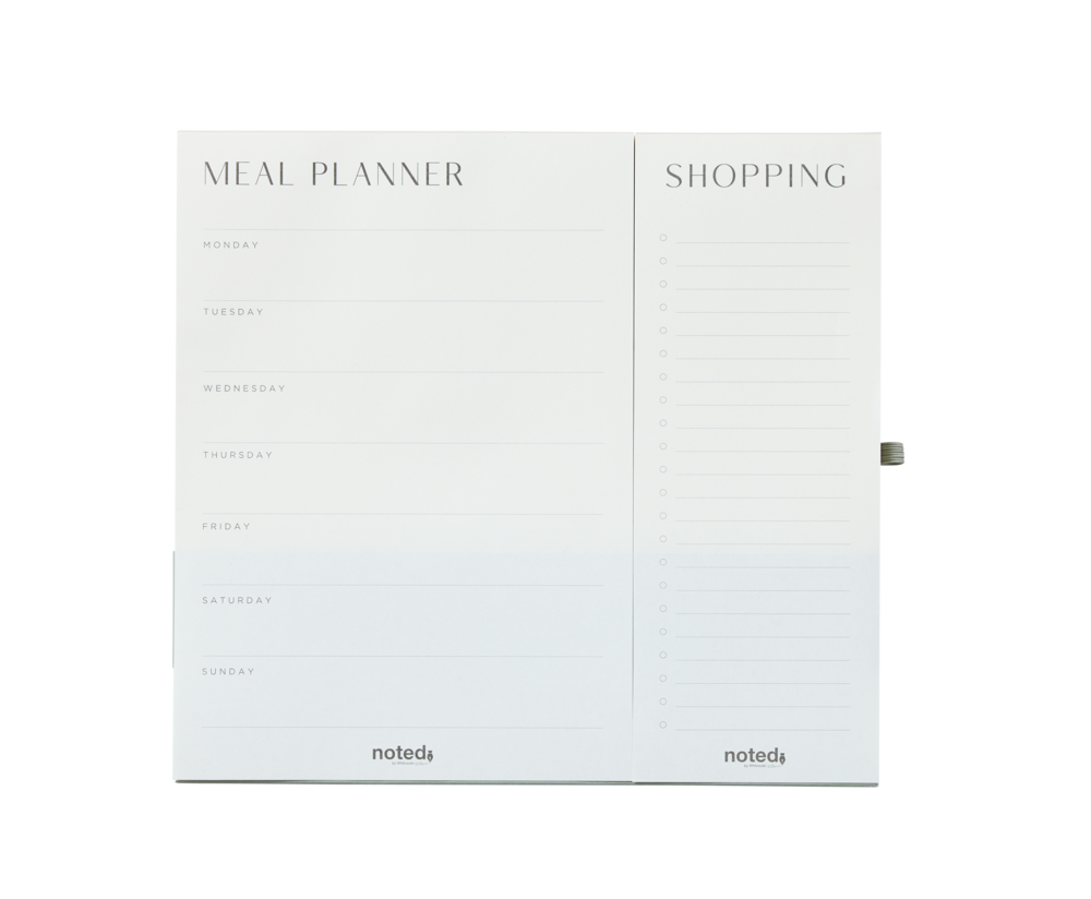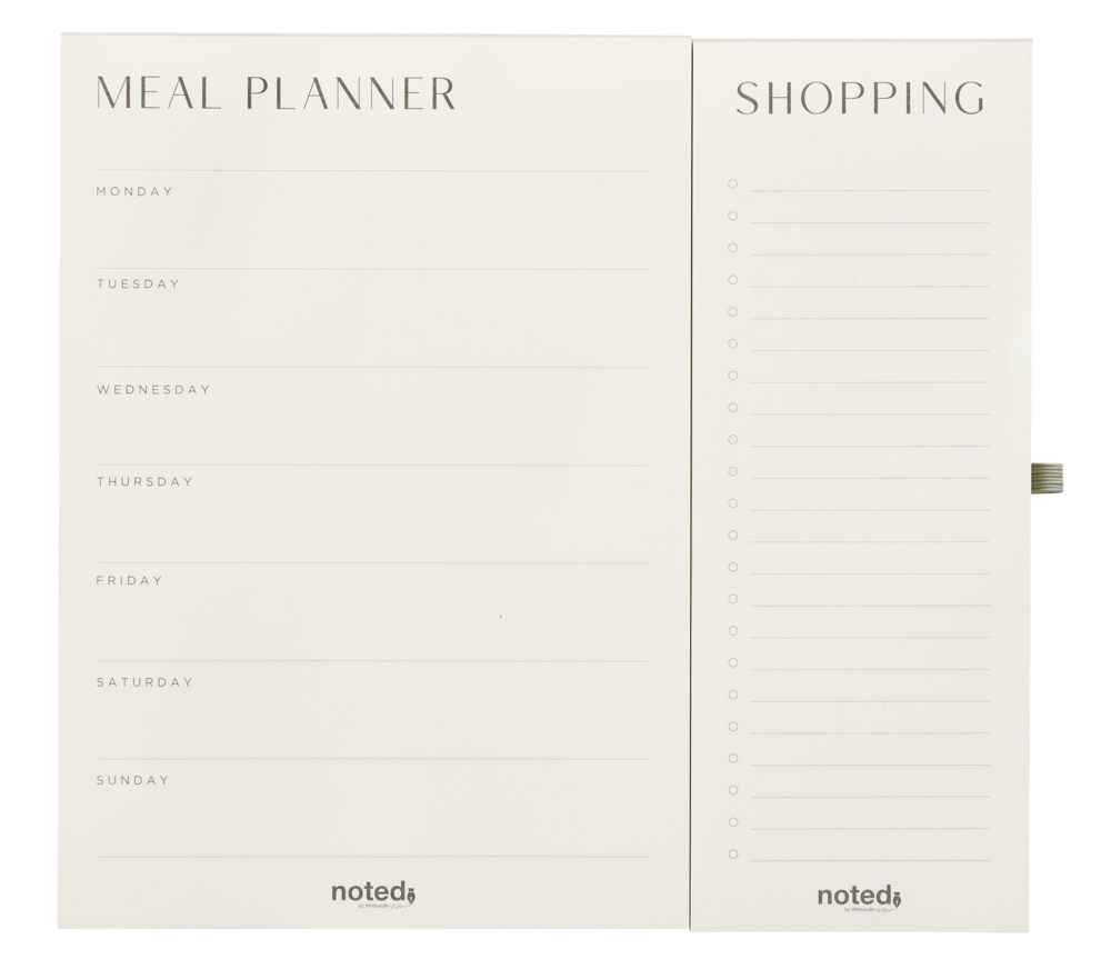 Plan out all your meals and your shopping for the week ahead with this stylish meal planner pad from the Noted Rosa range. Featuring both a meal planner and a separated shopping list, the meal planner features Monday to Sunday with plenty of space to write out your meals for the entire day; and the shopping list features a ruled column for listing specific products as well a checkbox for keeping track of your progress. The pad also has a magnet on the back so it can be easily attached to your fridge.