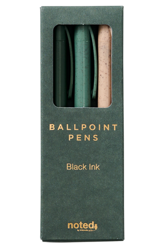 Write to your hearts content with this environmentally conscious pack of 3 pens with black ink from the Noted Siena range. These pens come in dark green, light green, and peach coloured barrels.