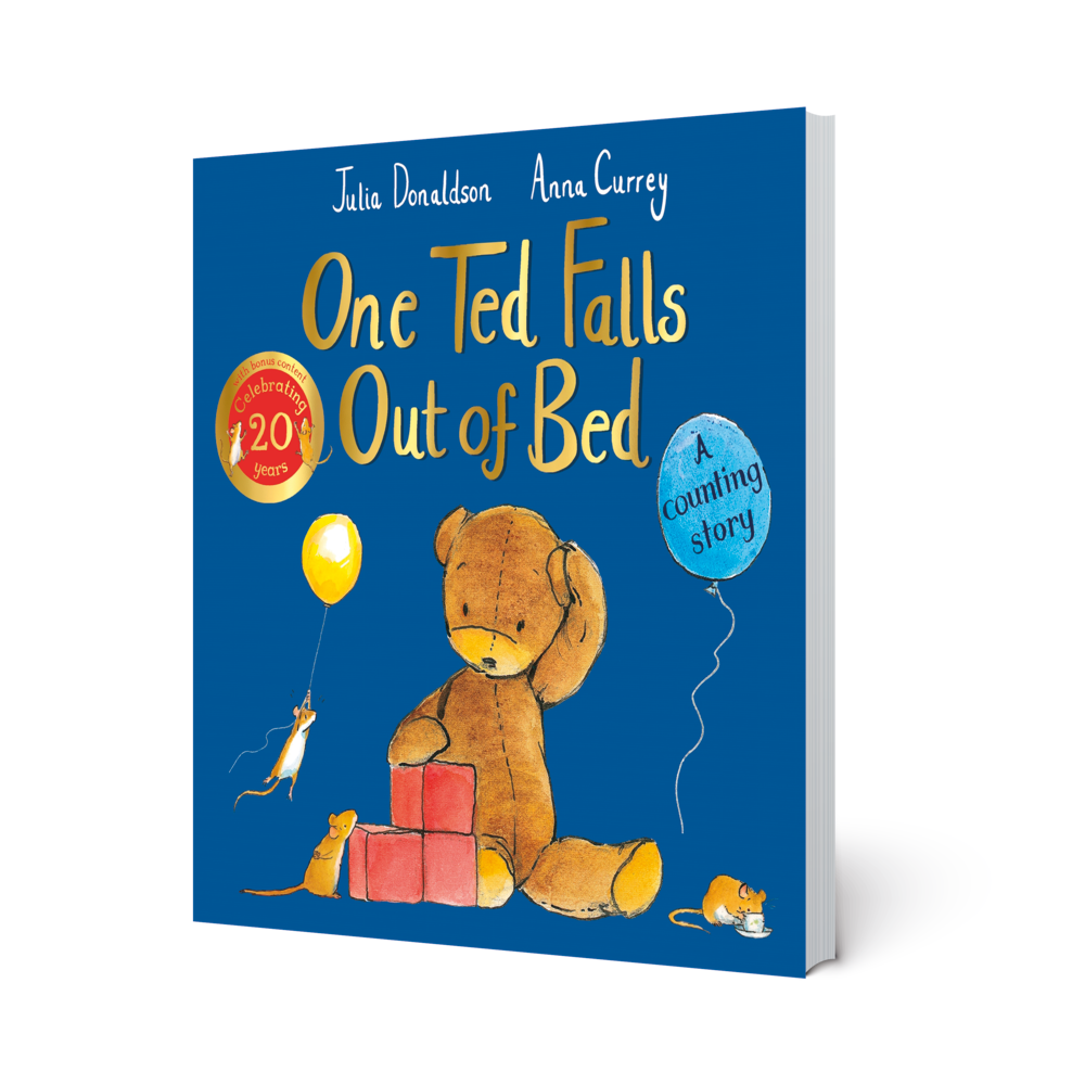 One Ted Falls Out of Bed turns 20 in this gorgeous anniversary edition, with a foil cover and never before seen bonus content. In this perfect bedtime read-aloud, poor Ted falls out of bed, only for three mischievous mice to whisk him off on a breathtaking adventure. They zoom around in fast cars, have tea with kind dolls, go on a balloon ride and climb a building-block mountain. It's all very exciting, but will Ted ever get back to his bed? One Ted Falls Out of Bed's counting theme is woven perfectly into a magical, rhythmic text by former Children's Laureate, Julia Donaldson, and features gorgeous Illustrations from Anna Currey.