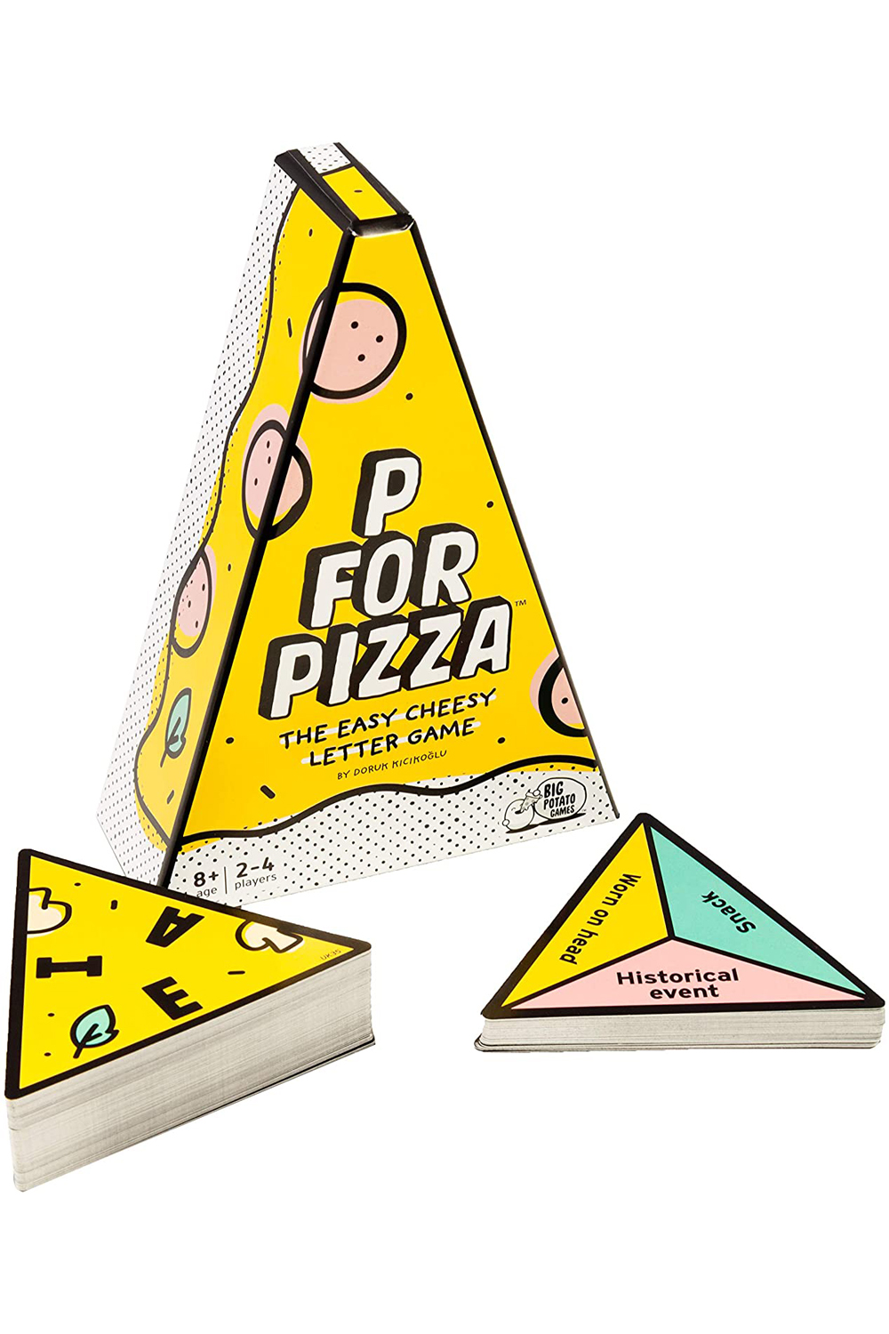 Tuck in to this fast paced word game where the aim is to shout out a word that links the letter on one card to the category on another. A food that starts with P? A bald celebrity that begins with B? A string instrument that starts with G? Or C? Or V? You'll have to be quick to win your slice of the pie. The first player to collect nine pizza cards and build their giant pizza slice - wins! Each category card is coloured green, amber and red for levels of difficulty which affects where you can place your winnings in your pizza pyramid.