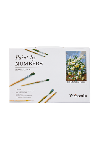 Perfect for budding artists perfecting their craft, this paint by numbers set allows you to paint a beautiful still life scene of white roses, just like the professionals! This set includes everything you need: a numbered design on a canvas, pots of acrylic paint, 3 brushes, 2 picture mounting hooks, and a printed reference paper.