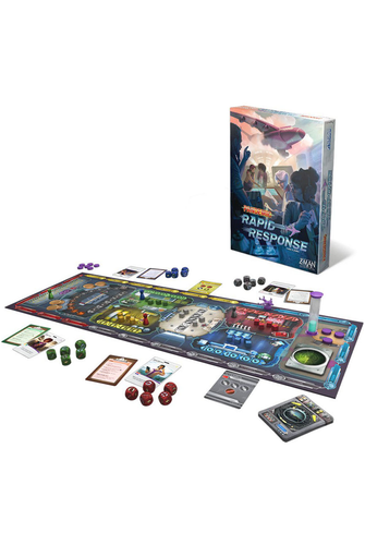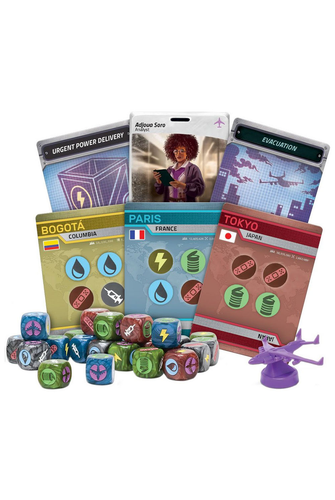 Disaster has struck, and humanity needs your help! Cities around the world are in desperate need of food, water, vaccines, and other supplies. The nations of the world have assembled a diverse crew of elite doctors and specialists: the Crisis Response Unit. As the Crisis Response Unit, you and your team are uniquely capable of providing life-saving aid - anytime, anywhere. Pandemic: Rapid Response is an exciting real-time dice game. Take turns as quickly as possible, using your role's unique ability and strategically allocating your dice to be as efficient as possible. If you and your team manage to deliver supplies in time, your mission is a success!