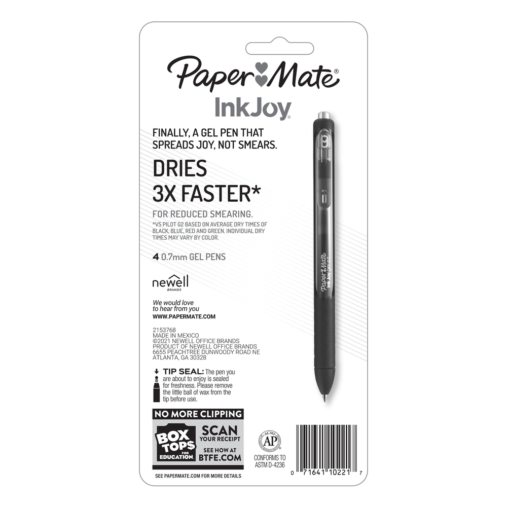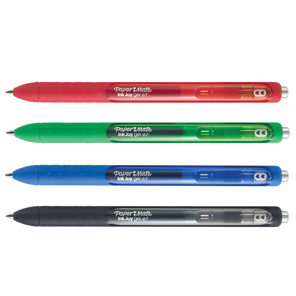 Spread joy (not smears) with quick-drying Paper Mate InkJoy Gel Pens. Quick-drying ink dries fast for reduced smearing. Retractable design is ready to write with just a click and the ergonomic comfort grip ensures a breezy writing experience.