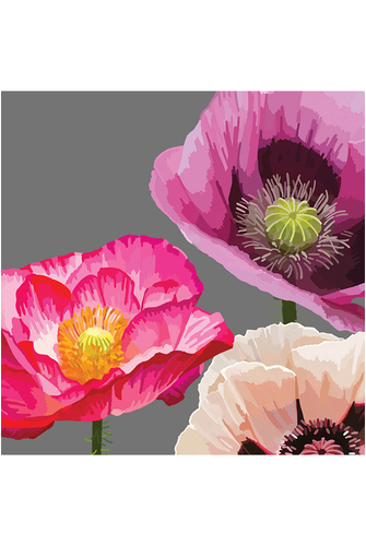 A pack of 20 3-ply lunch napkins featuring vibrant and colourful poppy illustrations on a grey background from Paperproducts Design. Paperproducts Design napkins are printed on oxygen bleached tissue with water based colours.