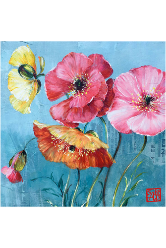 A pack of 20 3-ply lunch napkins featuring an stunning design of vibrant and colourful poppy blossoms on a teal background from Paperproducts Design. Paperproducts Design napkins are printed on oxygen bleached tissue with water based colours.