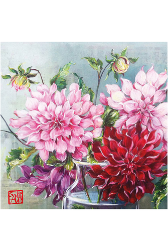 A pack of 20 3-ply lunch napkins featuring a painting of pink flowers in a vase with water from Paperproducts Design. Paperproducts Design napkins are printed on oxygen bleached tissue with water based colours.