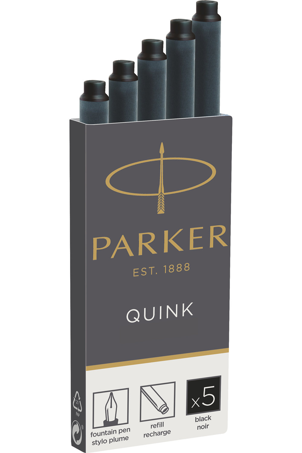 Parker Ink Cartridge Refill Long Black Pack of 5