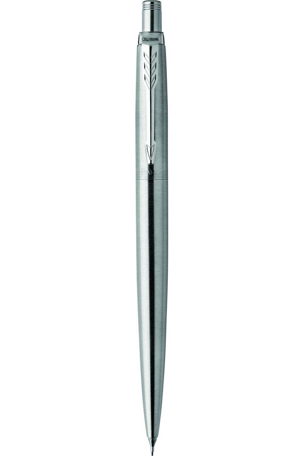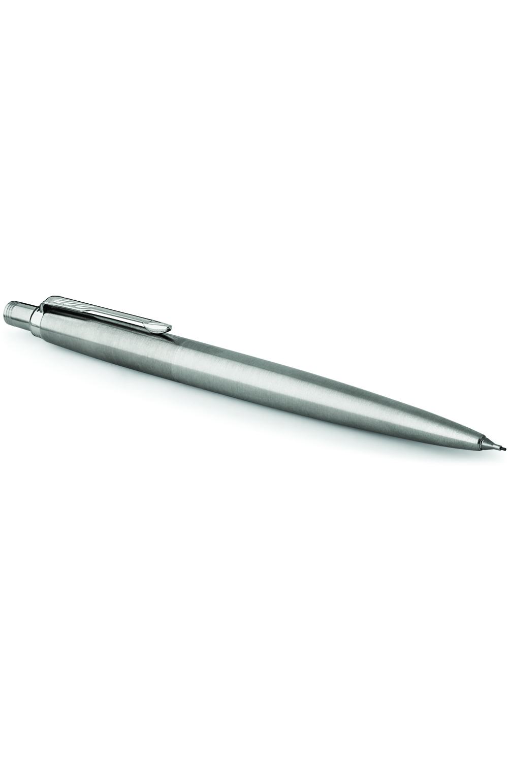 A Parker Jotter stainless steel mechanical pencil with chrome trim. Instantly noticed, Jotter stands as an authentic design icon of the last 60 years. With a distinctive shape, Jotter remains Parker's most popular range.