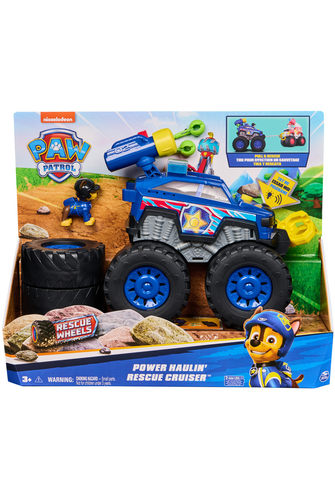 Embark on daring rescue missions alongside Chase, in his PAW Patrol: Rescue Wheels Power Haulin' Rescue Cruiser! This dynamic monster truck toy boasts oversized wheels, captivating lights, and sounds straight from the show! Chase's vehicle is equipped with a motorized, retractable winch featuring a functional claw for thrilling play. The Cruiser showcases authentic PAW Patrol styling, mirroring the on-screen appearance. Secure your PAW Patrol Chase figure in the driver's seat, load the projectile launcher with one of two projectiles, and press the launcher button to unleash action-packed fun! When friends are in a bind, manually extend the grappling hook, attach it with the claw, and activate the motorized winch for dramatic rescues, accompanied by engaging lights and sounds. PAW Patrol toys for boys & girls are great gifts for kids who are fans of the show, to foster imaginative pretend play and enhance fine motor skills.