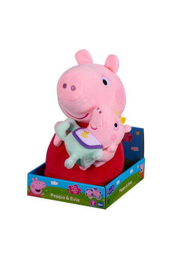 Proud sister Peppa loves giving cuddles to her new baby sister Evie! Presented in a platform box, Peppa wears her signature red dress and Evie wears her onesie, with yellow bow in her hair & printed bib with a little duck on the front. Evie also sports her heart-shape birthmark on her cheek! Peppa measures 23cm in height (including legs). Ideal for storytelling and roleplaying and the perfect size to take on adventures.