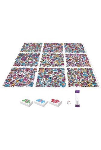 The Pictureka! game is laugh-out-loud entertainment as players try to find it fast and find it first in this picture game! Who will be the first player to find a dinosaur on one of the tile cards? How about finding things that are loud or crazy hairdos? The anticipation builds with every round as players choose from blue, red, and green mission cards, each with its own category. A blue card has players race to find an object shown only once on the tiles. Red lets players bid on how many of an object they can find - the highest bid gets to play that mission, but players need to get the amount they bid to get the card. Green cards have players roll the die and race against the clock to find as many items as they can. It's a frantic frenzy to find the picture and be the first one to shout "Pictureka"!