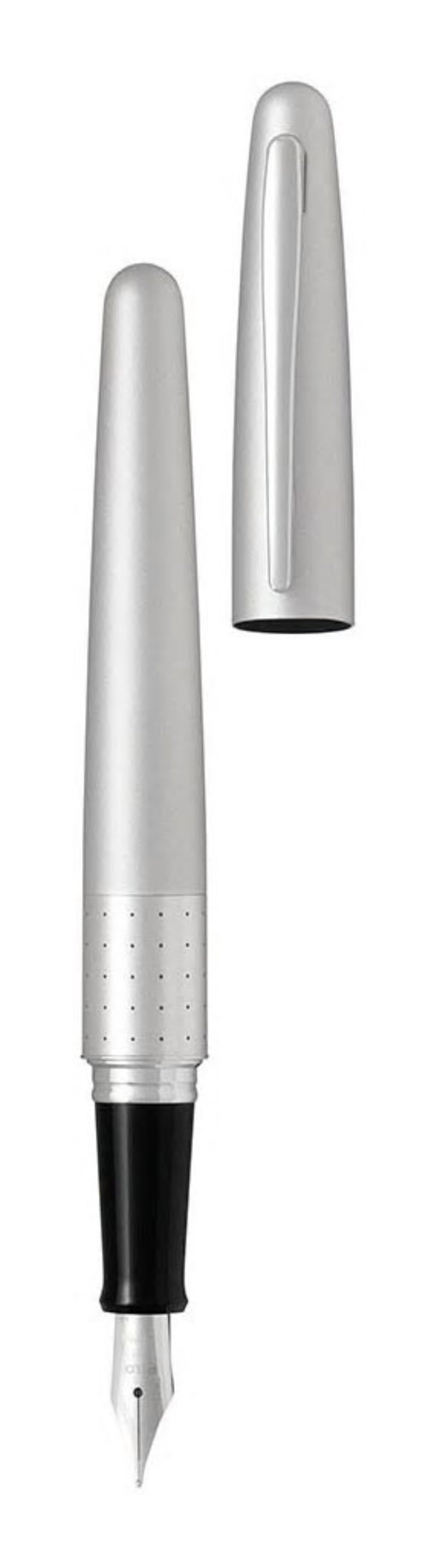A Pilot MR1 silver barrel ballpoint pen with stylish detail and a metallic brass coated barrel. A high quality executive fountain pen perfect for everyday use and would make an excellent gift. Engravable and refillable with Ink Converter 50, 20, or IC 50 disposable cartridge.