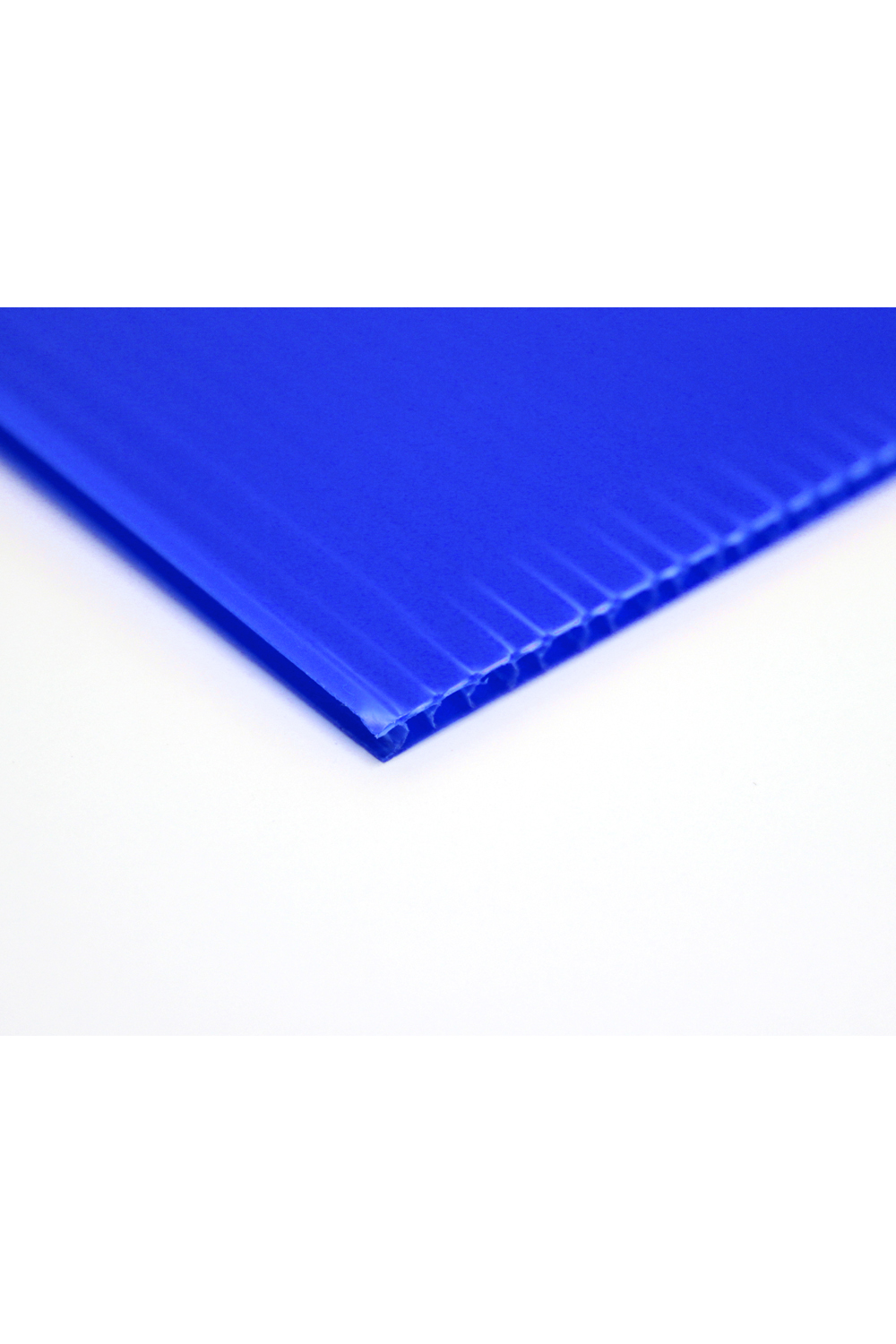 A sturdy 450 x 600mm piece of plasti-flute in blue, suitable for arts and crafts, signage, school art projects, displaying artwork, and other creative projects.
