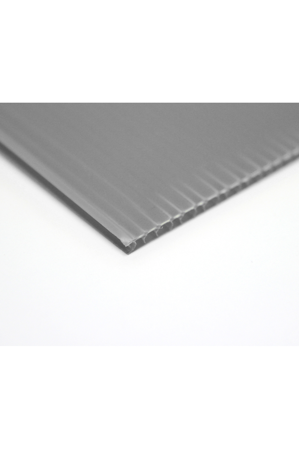 A sturdy 450 x 600mm piece of plasti-flute in silver, suitable for arts and crafts, signage, school art projects, displaying artwork, and other creative projects.