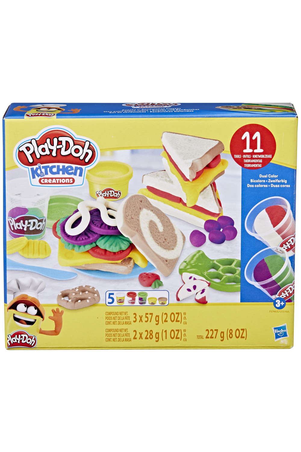 These assorted Play-Doh Kitchen Creations Playsets turns playtime into pretend lunchtime! These Play-Doh sets for kids have everything they need to create a variety of make-believe treats.