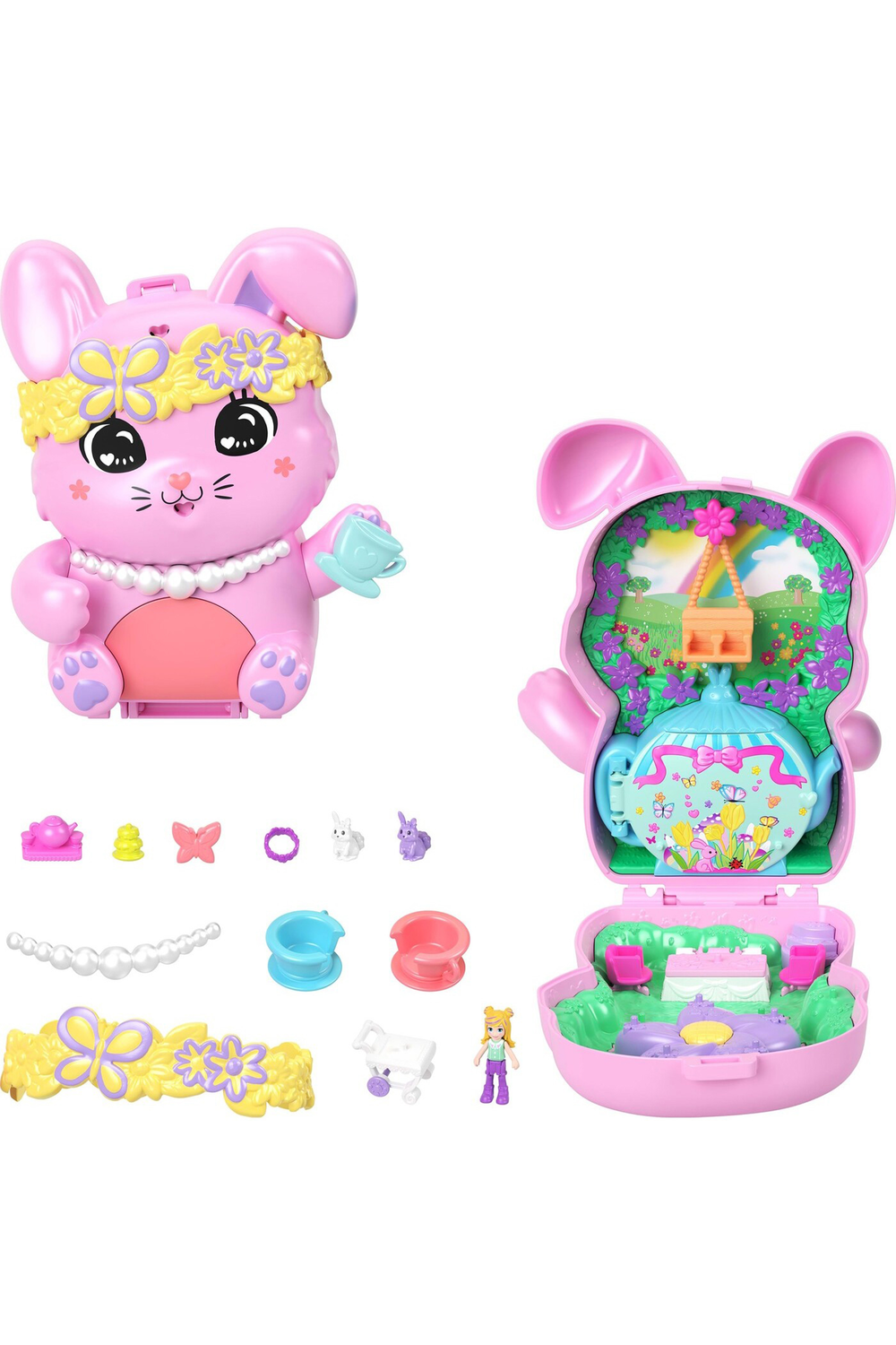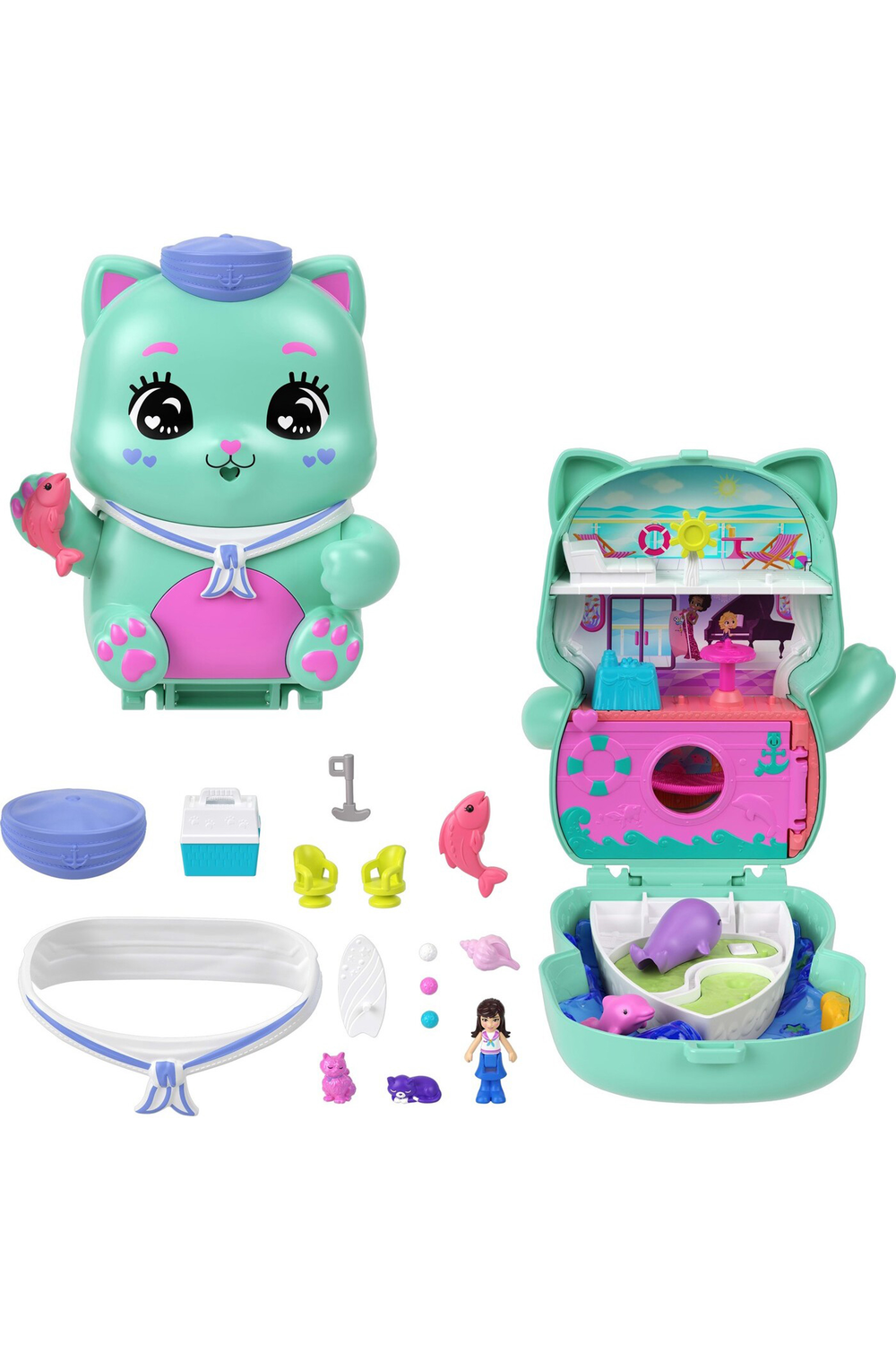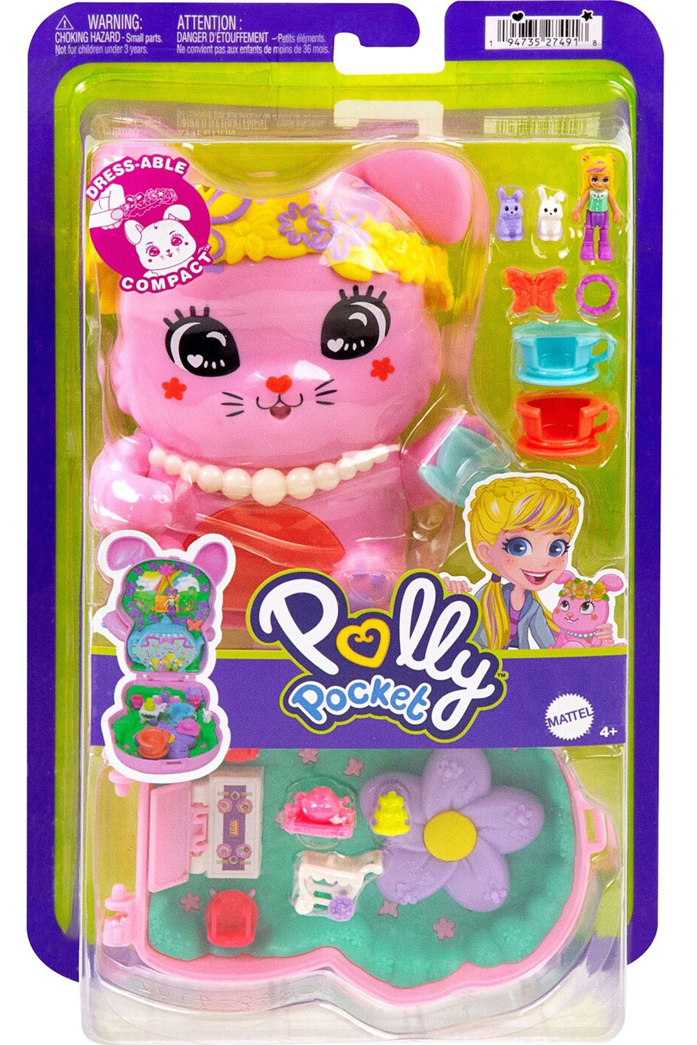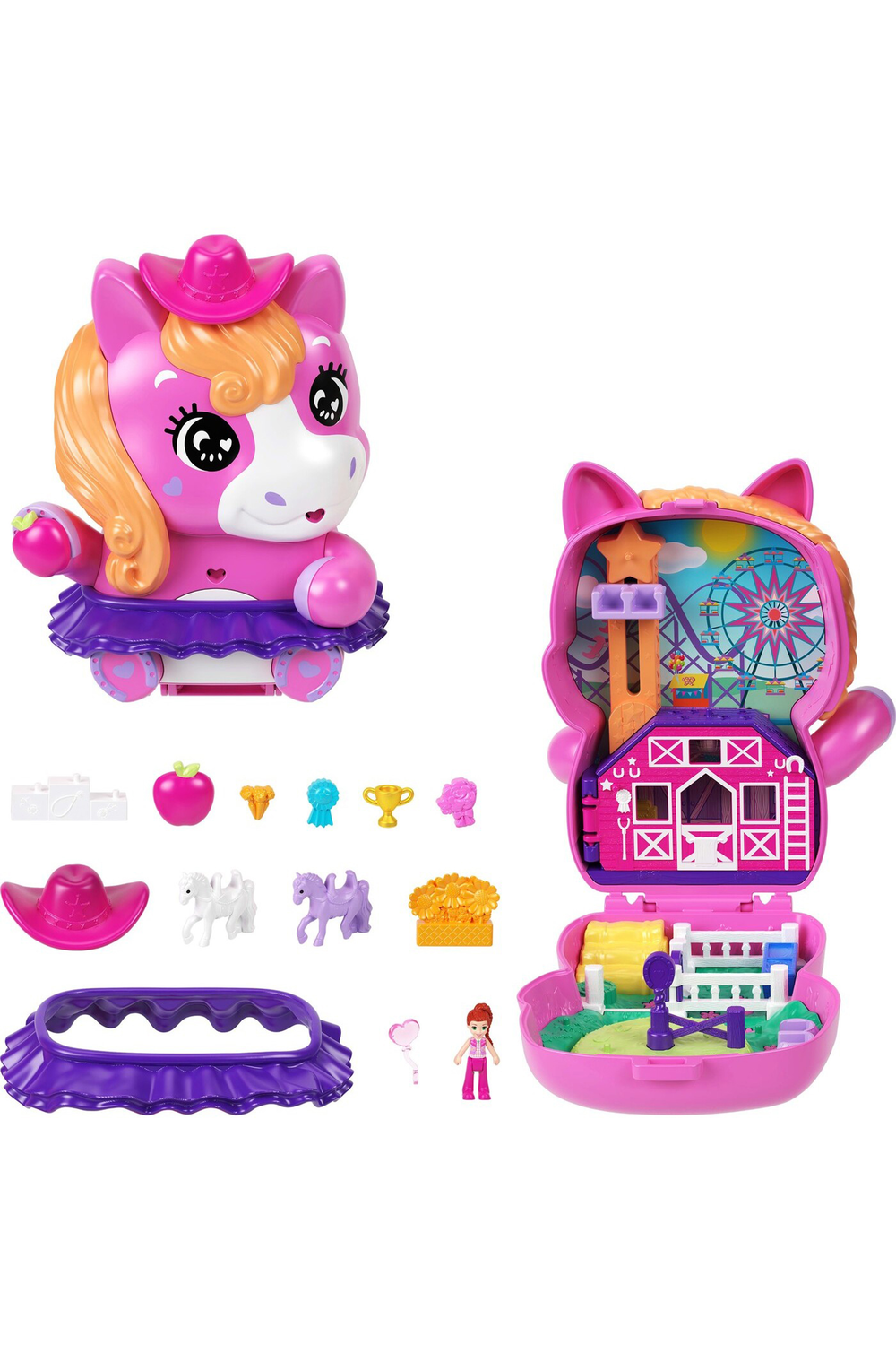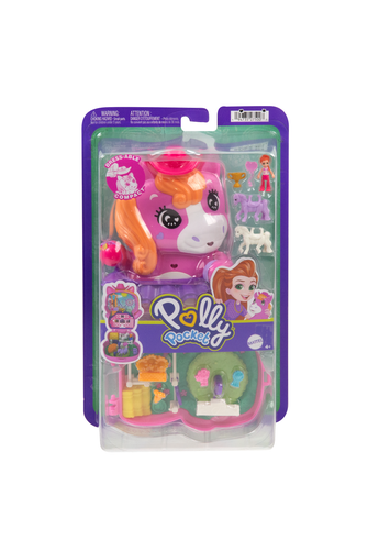 Polly Pocket Core Compacts hold tiny worlds with big surprises that kids can take on the go! Each portable toy features an adorable animal character on the outside with an interactive dress-able detail where kids can mix and match styling accessories for never-ending play possibilities! After styling the playset exterior, open the compact to reveal one micro doll, multiple moving play features and 10+ accessories. Have a puppy slumber party, visit a pony rodeo, set sail on a kitty cruise ship, or have a tea party with bunny friends - kids will want to collect them all to combine the worlds and expand the fun! Each sold separately, subject to availability. Features: Each Polly Pocket Core Compact opens to reveal a tiny world filled with big surprises -- kids will find so much to do! An adorable pet decorates the exterior with an interactive dress-able feature where kids can express their unique fashion sense with mix-and-match styling accessories! The portable toys open to reveal a themed playset with 1 micro doll, moving features, and multiple accessories. Take the compacts on the go for adventures anytime, anywhere!