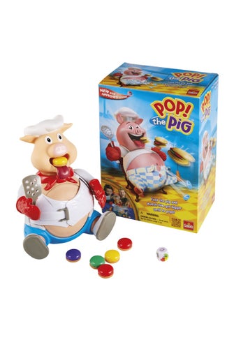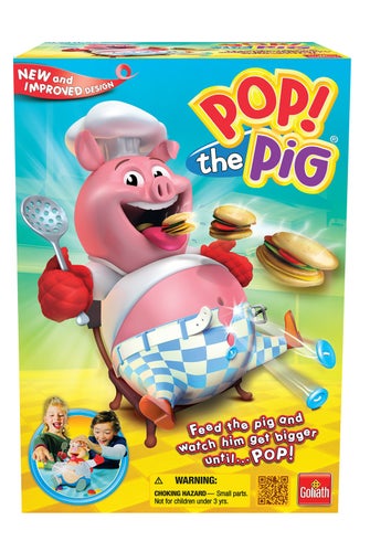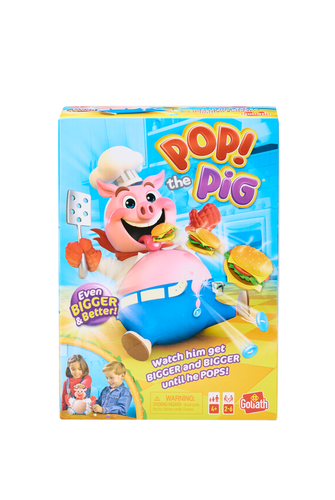 Pop the Pig is an international preschool classic that is adored by millions of children - it's been a top-selling preschool game. Kids spin the spinner, pop a hamburger into the pig's mouth and push down on his head. The more they pump, the more his belly grows until... POP! Kids love the suspense as they watch the pig's belly grow; the player who makes his belly burst wins the game! Children can quickly reset the game with one pump of the pig's head and experience consistent belly-busting gameplay each and every time. For added convenience, pieces can be stored inside the pig!