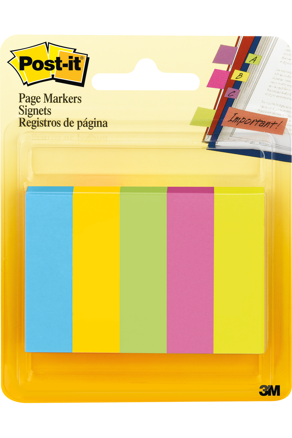 Easily write on Post-it page markers to add messages in notebooks, textbooks, planners and other documents. Use as a book page marker to quickly find your spot then remove page markers cleanly to avoid damage to books. sticky page markers are great to organize and plan your everyday life. They stick securely and remove cleanly. post-it page markers have bright, vibrant colours. Post-it Page Markers are recyclable and the paper is sourced from certified, renewable and responsibly managed forests.