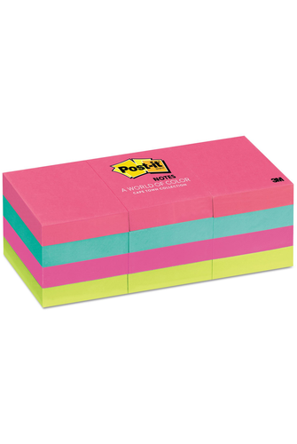 Post-it Notes stick securely and remove cleanly, featuring a unique adhesive designed for use on paper. They are great to call out important information or leave notes in calendars or planners. The small size is great to jot down a quick phone number or short note. The Poptimistic collection gives your messages pop and optimism with bright colours that grab attention. Post-it Notes are recyclable, and the paper in Post-it Notes is sourced from certified, renewable and responsibly managed forests. There are 100 sheets per pad and 12 pads per pack.