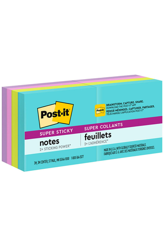 Ideas are out of this world with the electric colours of the Post-it Super Sticky Notes Supernova Neons Collection. Whether jotting down your daily to-do's, brainstorming big ideas, studying or setting reminders, colours and ideas are always brighter together. These sticky notes feature 2x the sticking power. They also stick and re-stick - allowing you to move your notes with you throughout your day. A great memo pad, these are ideal for using for notes or reminders to yourself or others. Each notes sheet is approximately 48 x 48mm, with 90 sheets per pad and 8 sticky note pads per pack.